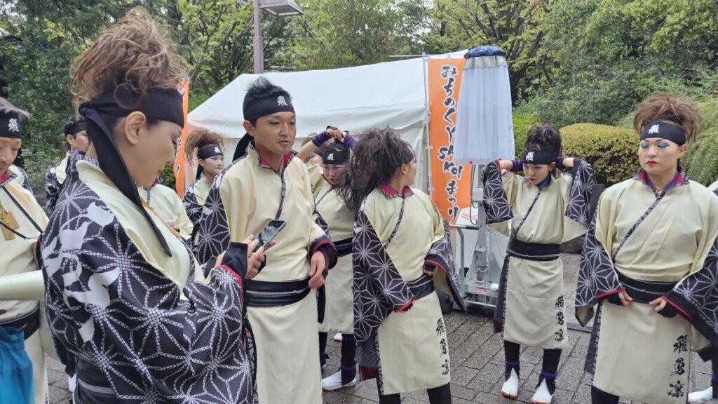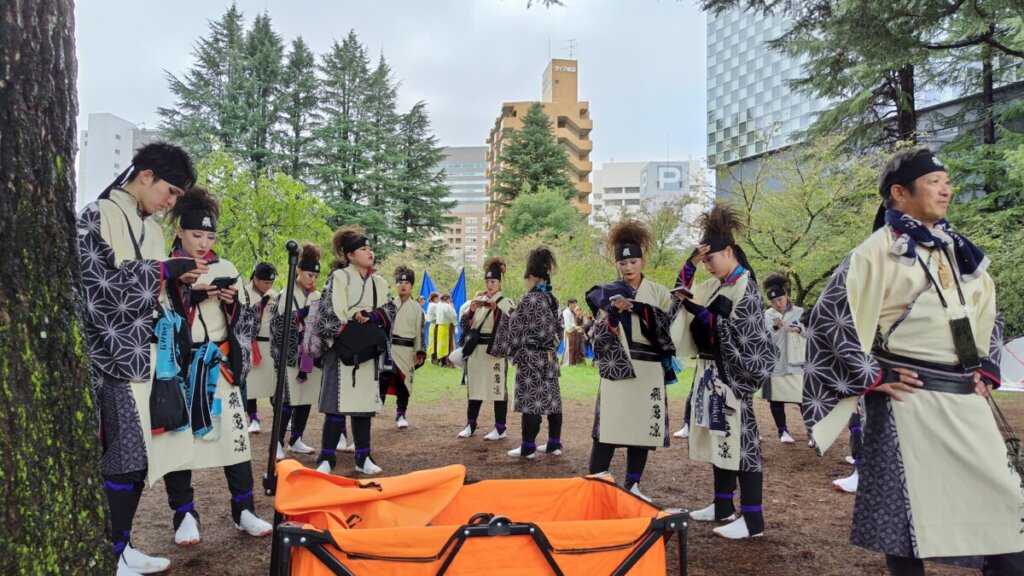 時間に余裕がありましたのでここでチームの集合写真を撮り、いったん自由時間に。で、筆者は他チームさんを撮影し遊んでいたところ集合時刻より前に飛勇凛が入場してきてちょっと焦る(笑)海童いしゃりさんファイナル進出によるキャンセル枠で一回多く踊らせていただくことになったみたいです。