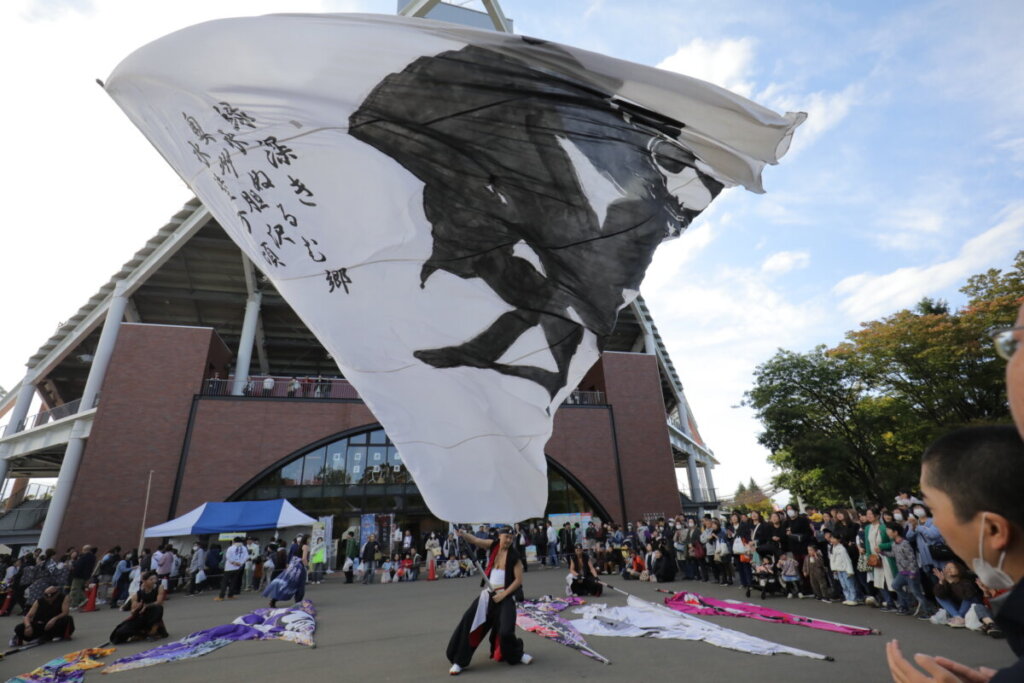 青森県弘前市で開催された『津軽の食と産業まつり』にて演舞させていただきました。