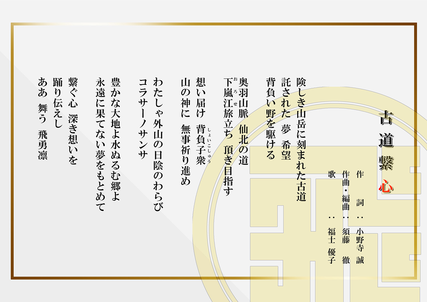 胆沢から秋田へ通る仙北街道。登る苦労と目的地にたどり着く喜び、地元の繁栄を表現。