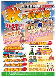 前沢自動車学校1日開放秋の感謝祭 イベント詳細 日付: 2025年9月27日 カテゴリ: 02イベント 【日時】2025(R7)年9月27日(土) 【場所】前沢自動車学校 YOSAKOIは紅翔連、遊夢舞、剛雅燕、飛勇凛、江刺華舞斗、水沢絆舞連、繋縁、げいび藤美連の出演 2025年8月20日Posted by hiyu-rin